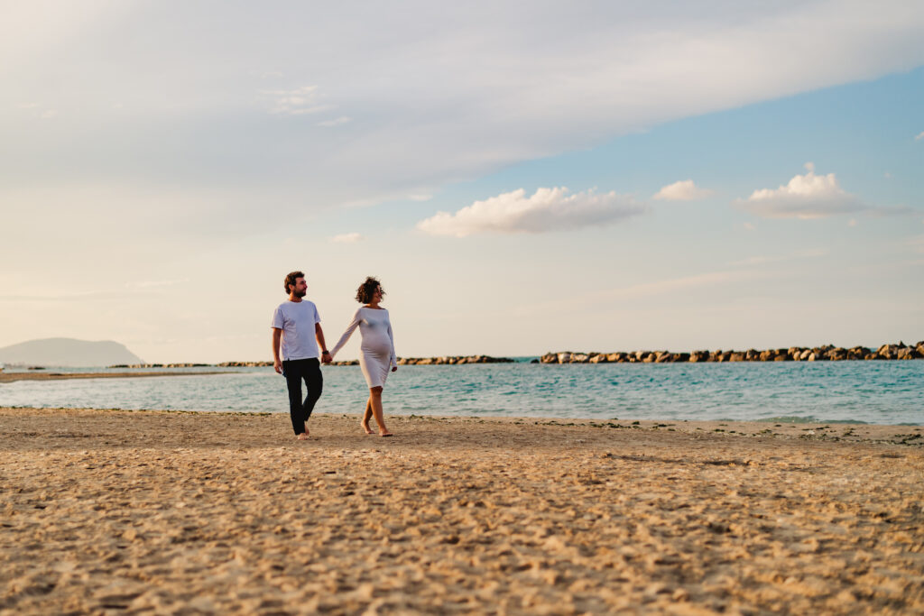 Un tramonto, una famiglia in attesa del loro piccolo e una spiaggia stupenda. La magia si è sentita subito, la spiaggia ormai era deserta, e il rumore del mare era cosi dolce che sembrava davvero un set da sogno. è sempre emozionante per me fotografare una famiglia che sta per allargarsi, e in una location cosi da sogno, il risultato è strepitoso.